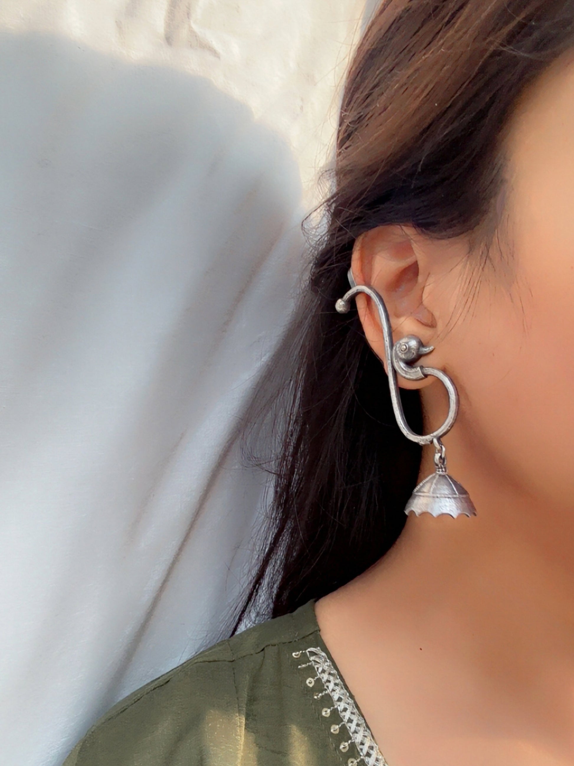 - Design: Sculptural earcuff with bird motif & jhumki drop